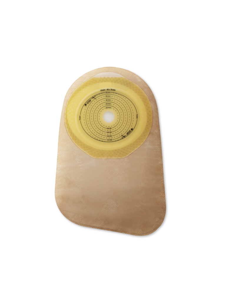 Sistema colector para ostomía de una pieza, bolsa cerrada. La bolsa cerrada está diseñada para ser desechada luego de su uso. Estas bolsas son ideales para colostomías o para estomas con efluente menos frecuente y más predecible. La barrera SoftFlex es una barrera cutánea que es gentil con la piel. El filtro AF300 permite la liberación lenta y desodorización del gas dentro de la bolsa. Los paneles ComfortWear de color beige, son suaves y ayudan a brindar comodidad.